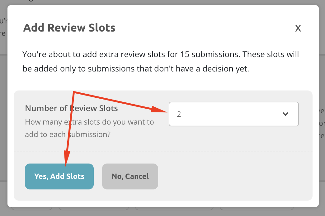 - Select the number of extra reviewers you need and click Yes, Add Slots.