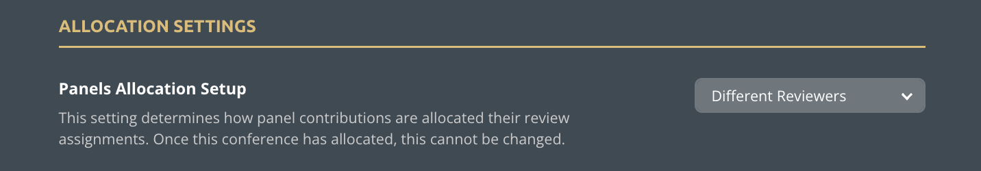 - Same reviewers model: reviewers are assigned to panel contributions if they share topics, but the system ensures the same reviewers get all of the panel contributions to ensure they have the complete picture