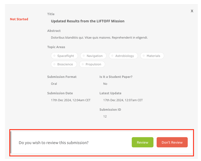 If enabled, Reviewers will have the option accept or decline assignments by clicking on the Review or Don't Review buttons.