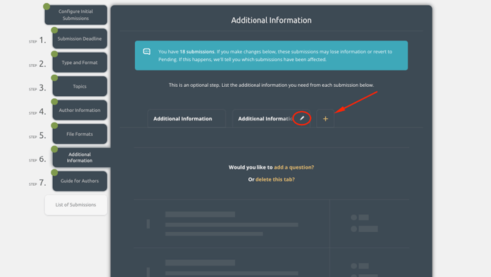 You may have many questions to ask a group of authors, and that can make the workflow feel very busy. Not to worry! You can create tabs for different question types.