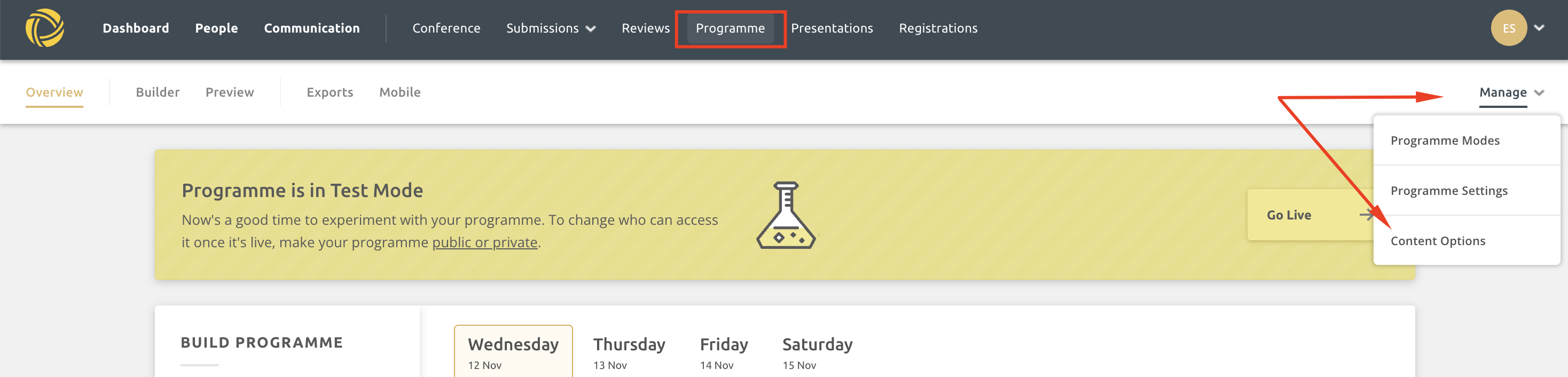 - Click on Programme at the top of the page