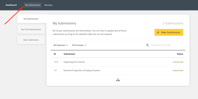You can also click on My Submissions at the top of the page to view all of your submissions.