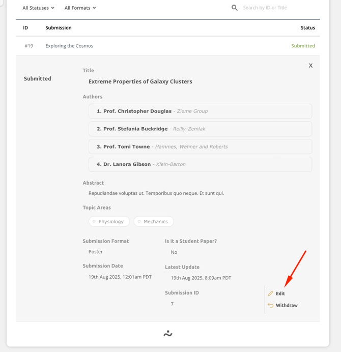 - In the initial submissions hub before the submission deadline and before your submission has been assigned to a reviewer