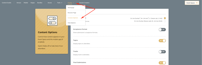 Here you can decide what content you would like to show in your programme but also which content will be synced into your guide. If you would like to show different content in the Programme and in the guide you can always change the settings from the Content Options page. For example, if you would like to show your Final Papers in the Programme but not in the guide set Final Papers to Off, Sync the content and when Sync is completed, change the setting back to On to show them in the Programme. Every time you make a change in this setting, you will see a banner on the top of the page that prompts you to Sync again.