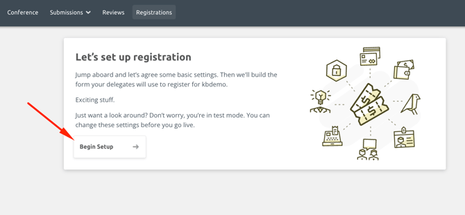 If you have not clicked through the registrations settings quite yet, you will see a set up wizard. Click the Begin Setup button to get started whenever you are ready! The wizard will ask you to confirm information such as: