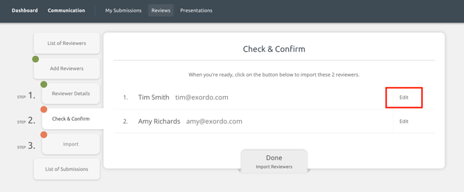 Double check the reviewer details and edit them, if needed. Click Done to go to the next step.