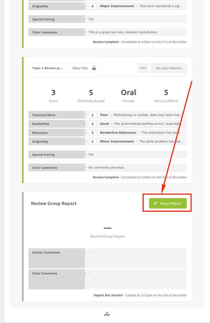 Review group chairs may be asked to complete a report for the conference organisers. This article walks through how to complete your review group reports.