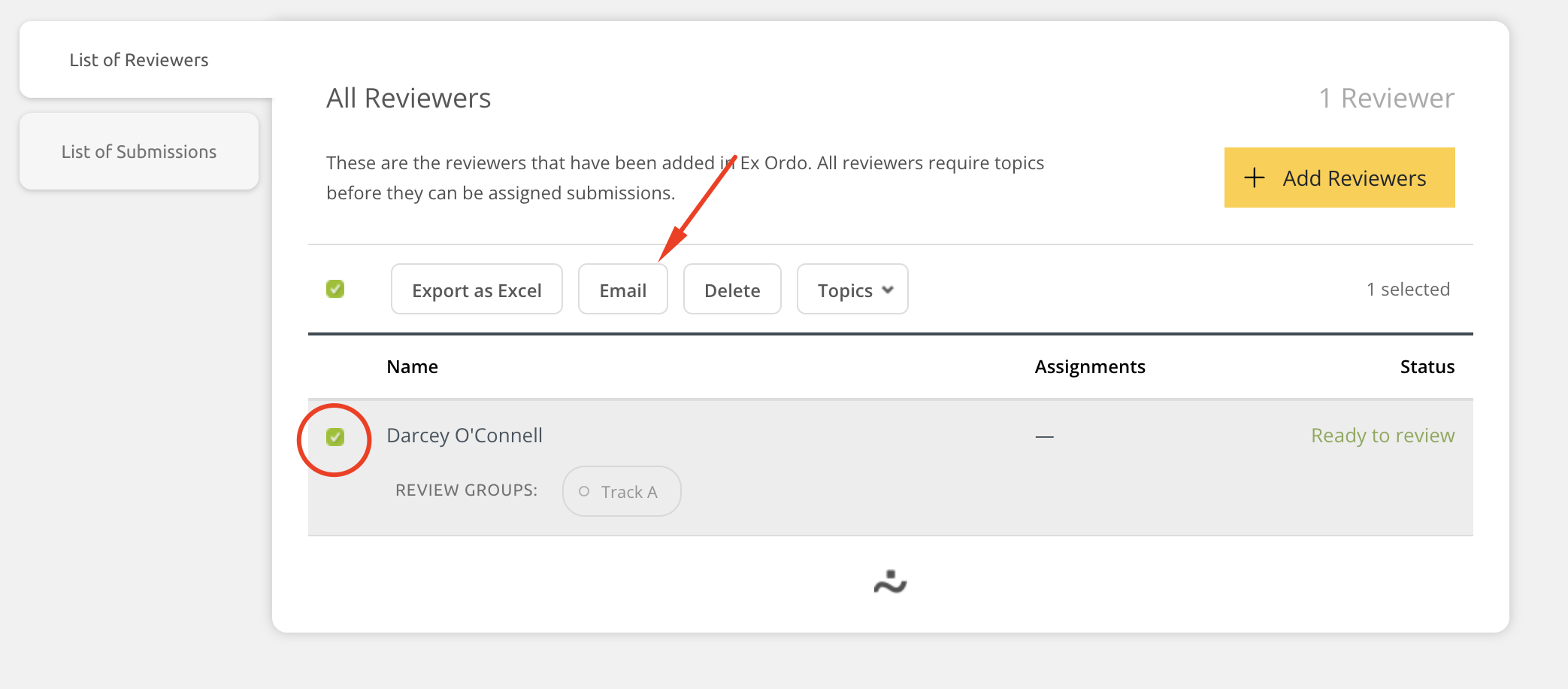Next, place a check in the box to left-hand side of the reviewer's name and click Email.