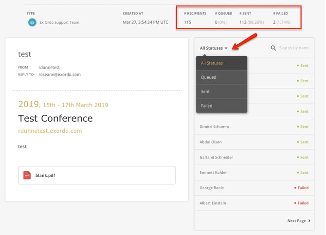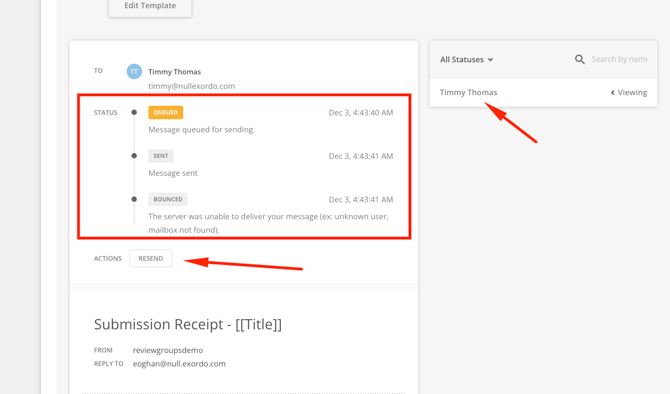 First, be sure to follow the steps above to open the email you are investigating. You can then see additional information when clicking on a specific person's name. You can even try to Resend the email if you know the address is correct.
