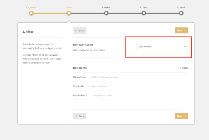 No matter how you create your invitation email, it's important to ensure the filter is set to Not Invited. Click Next to edit your message.