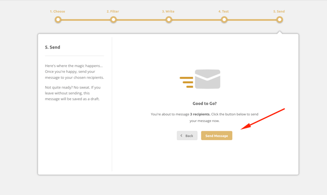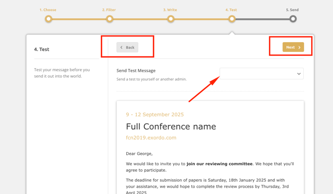 You can review your email on the next step. You can send yourself a test message to see it in your own inbox. Click Back to edit the message or click Done if you are happy to send it.