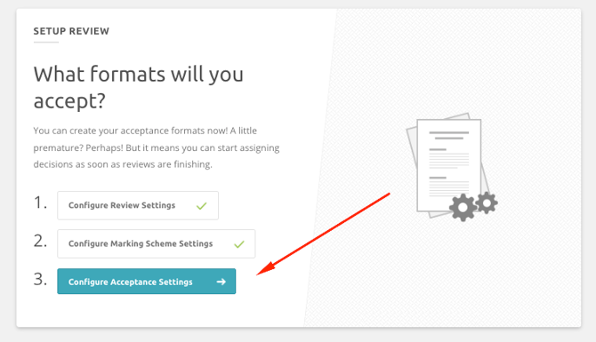 To get started, click on Configure Acceptance Settings on your Setup Review dashboard card.