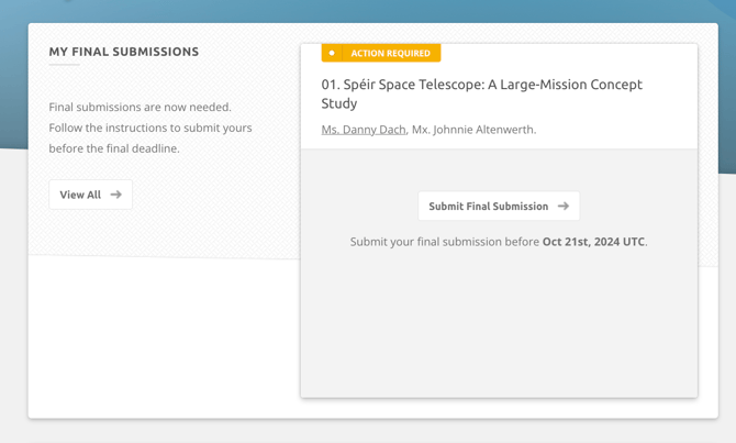 That's it! Accepted authors will see a card on their dashboard inviting them to complete their final submission.